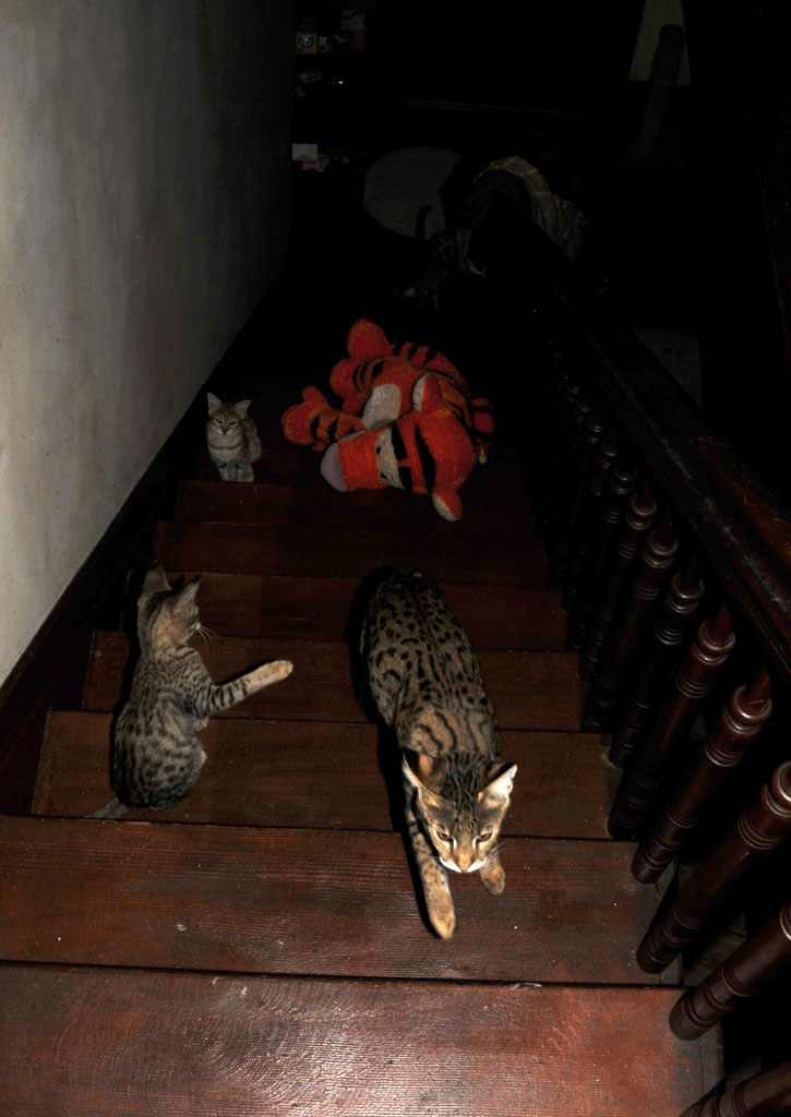 Missy loves to drag large objects around the house, here she just dropped the large Tigger toy when she saw me.. |