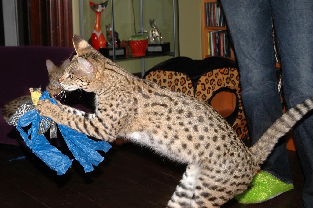 Playtime...Missy is funny because she always shuts her eyes leaping for the toy! |
