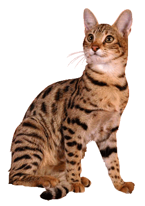 Monkey Monkey is the second girl to be born here. See Monkey's pedigree here. Monkey is a B-registered high percentage F4 ( 24.5% Serval). If you want to know how she can be 4th generation and the Serval % equivalent to an F2, read about her mother Katie in the description above. Monkey has many breeds in her background (Bengal, Serengeti, Egyptian Mau, Oriental Shorthair). Monkey has a wonderful face, long legs,