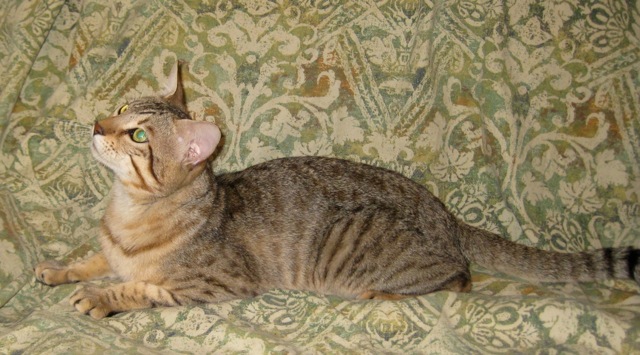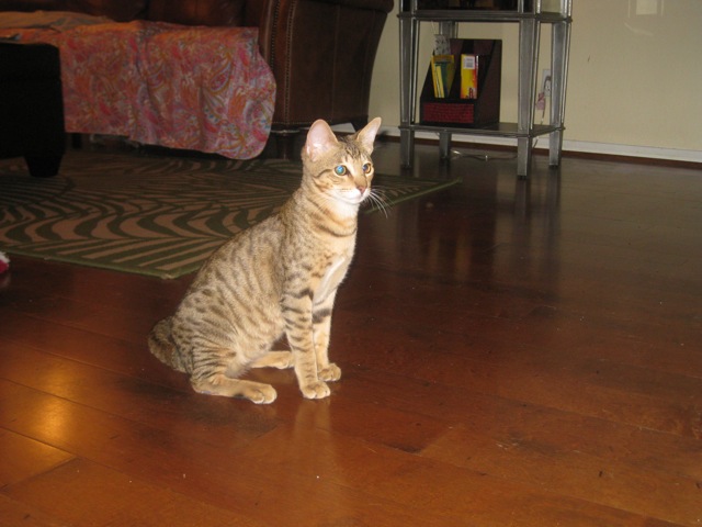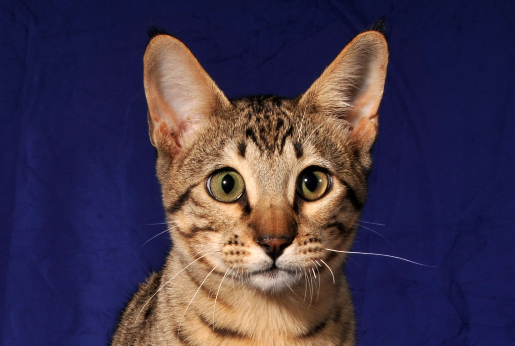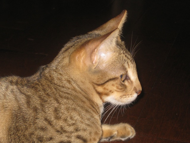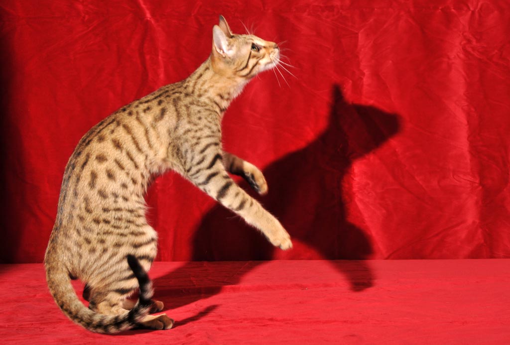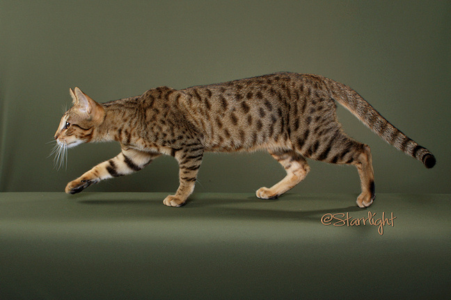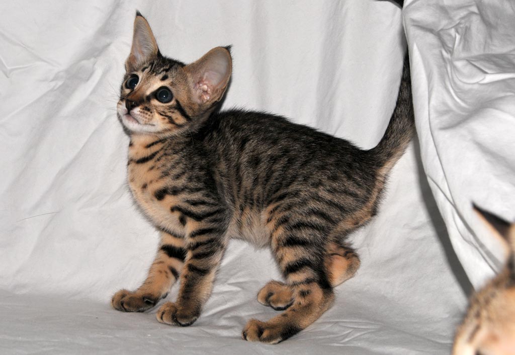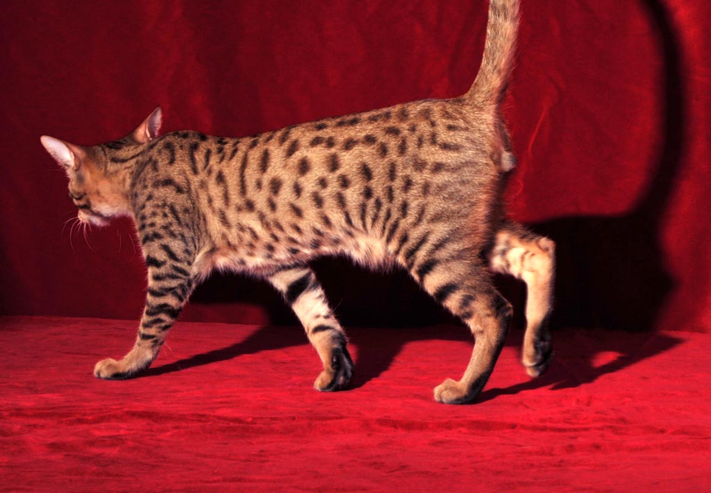 Brazzi Brazzi is an SBT Savannah, which means that there are only Savannahs in his three generation pedigree, this is what is considered a "purebred" by our cat registry TICA (the International Cat Association, www.tica.org). Brazzi is coowned with our sister cattery Gattobello Savannahs . Brazzi has developed nicely...he has a lovely small eye and generous nose leather, his body is nicely proportioned and he showed decent ears before his stud jowls ruined his look. Brazzi is a super-sweet cat, which makes us so happy as we (both Kristine and I) feel that temperament is an important part of the Savannah breed. |