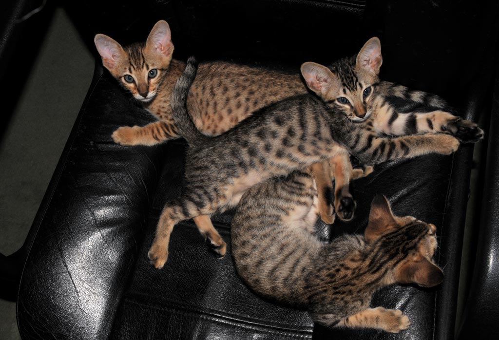 Naptime makes it easier to get pics... here he is in the middle of his siblings, at top is Liam of AllEarz Savannahs, and bottom is sister Keely |