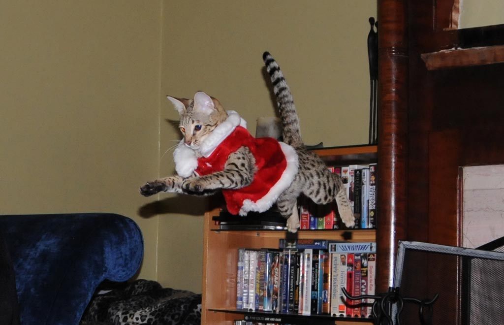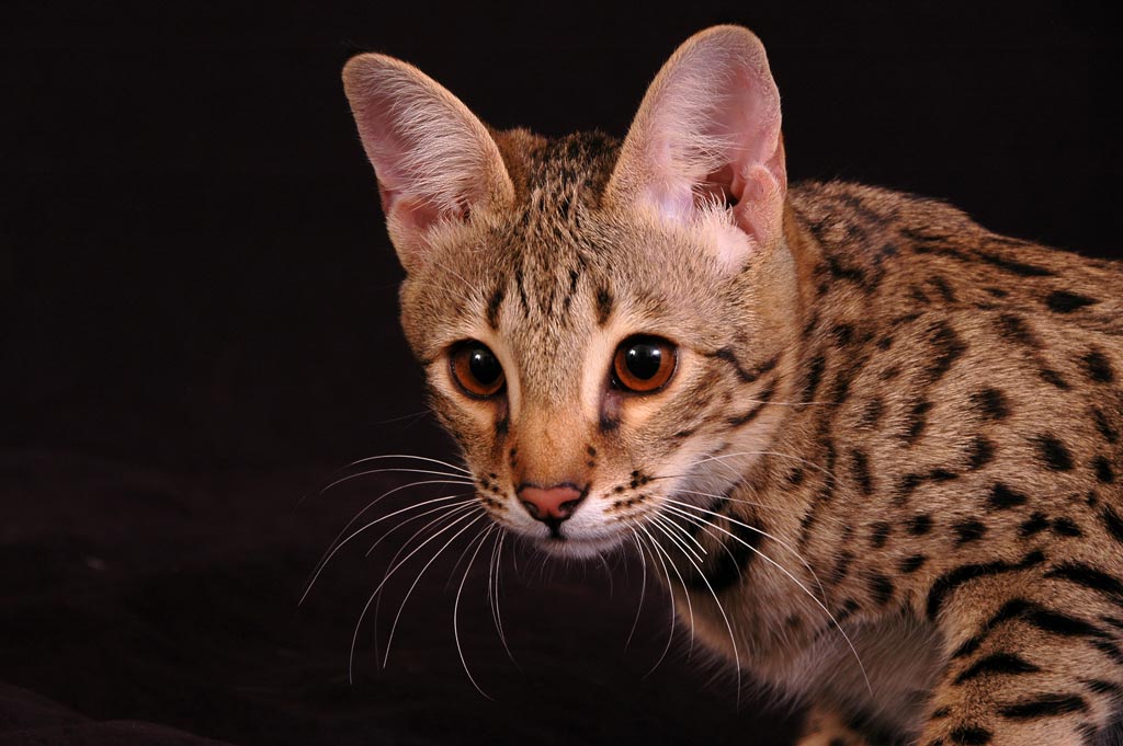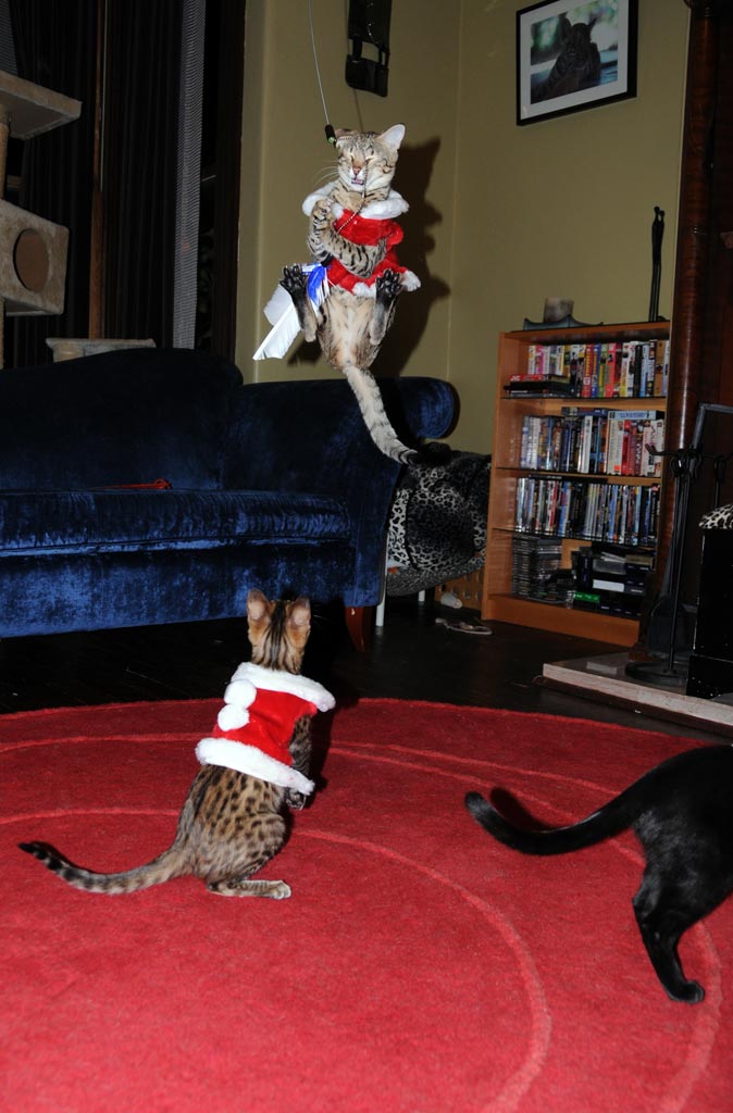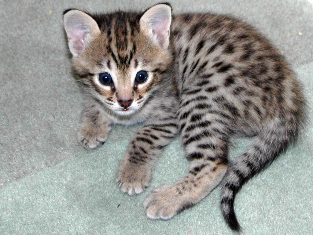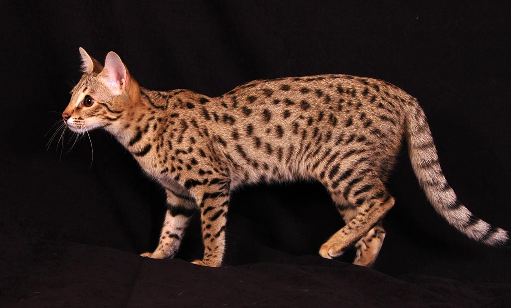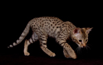 Tisha is my favorite kitten produced here ever, it broke my heart to let her leave here. This was for her, not me, and my heart still aches for my little princess. She is very lucky to have found such a great new owner... and I have every expectations she is ruling that home and Dukie too! I will be delighted if I can produce more kittens with Tisha's type, to me she is as wonderful and says "Serval in a domestic package". No Savannah is perfect of course, but some excite us more when they come along... |